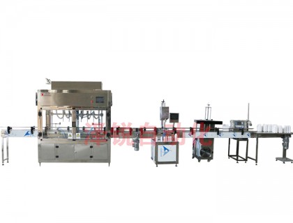全自動液體定量包裝生產線,廣范適用于農藥 玻璃水 防凍液 尿素溶液 液體肥料 及低粘度芝麻油 香油 橄欖油 辣椒油 棉籽油等液體的定量灌裝,可根據需要選配洗瓶機 封口機 噴碼機 貼標機 封箱機等設備,節省勞動力,提高生產能力.實現自動化包裝生產.
