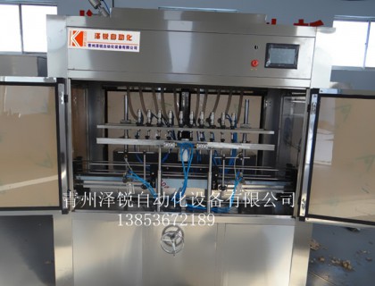 適用于大多數(shù)瓶型(尤其是異型瓶)的灌裝,克服了旋轉(zhuǎn)灌裝機更換瓶型時要更換撥盤等麻煩,